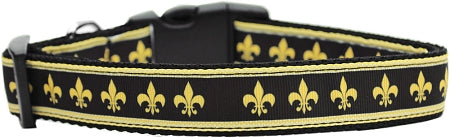 Black And Gold Fleur De Lis Nylon Dog Collar Xs