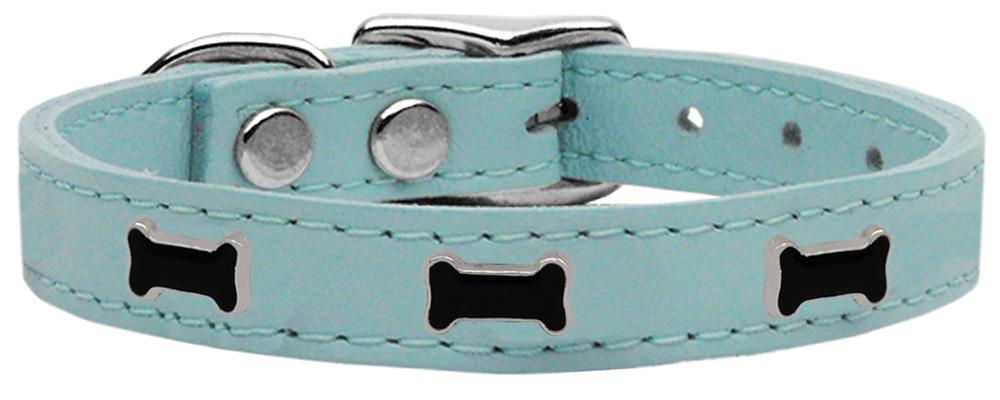Black Bone Widget Genuine Leather Dog Collar Baby Blue 14