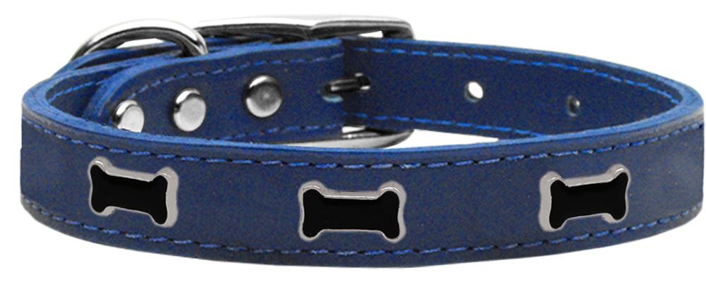 Black Bone Widget Genuine Leather Dog Collar Blue 18