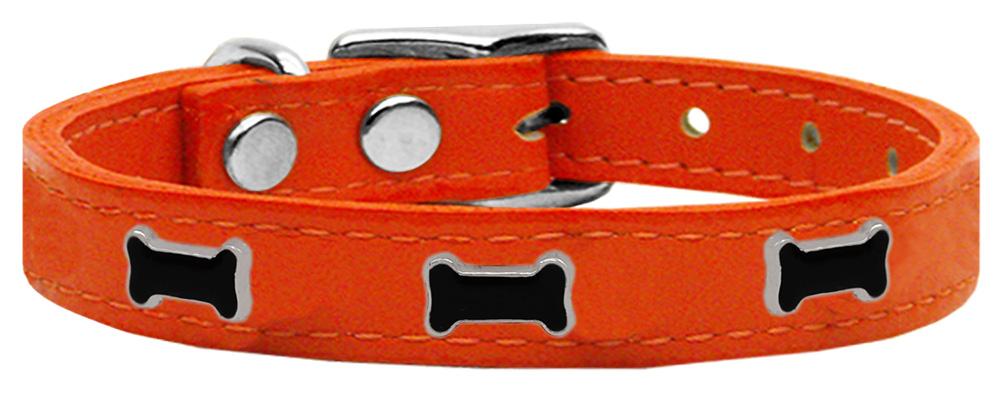 Black Bone Widget Genuine Leather Dog Collar Orange 12