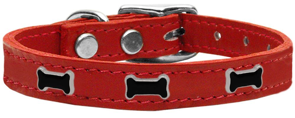 Black Bone Widget Genuine Leather Dog Collar Red 24