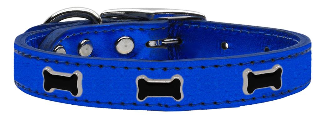 Black Bone Widget Genuine Metallic Leather Dog Collar Blue 12