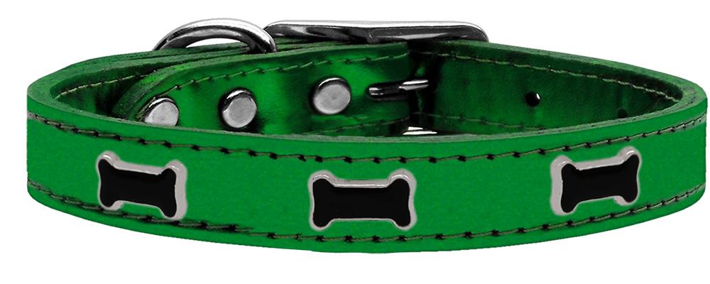 Black Bone Widget Genuine Metallic Leather Dog Collar Emerald Green 26
