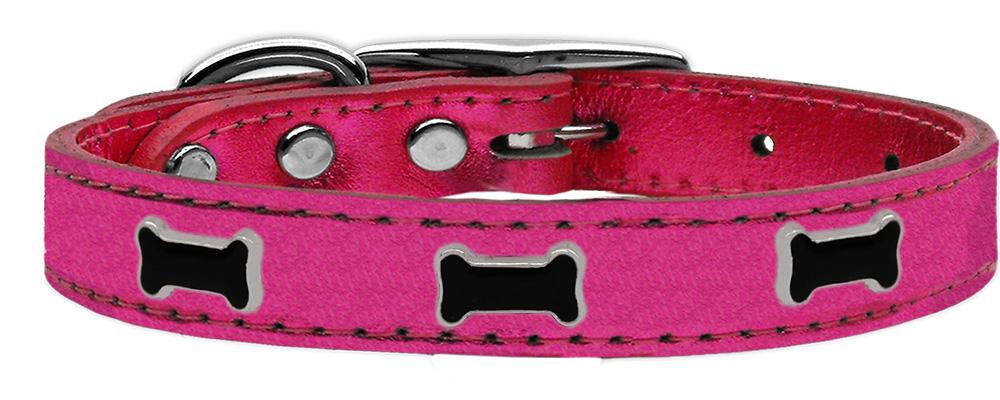 Black Bone Widget Genuine Metallic Leather Dog Collar Pink 18