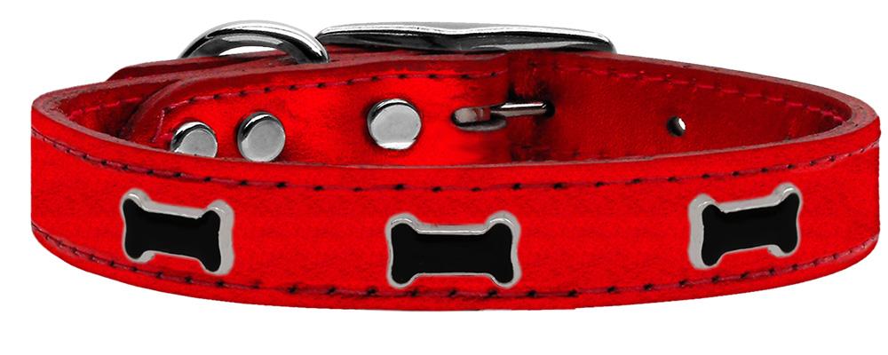 Black Bone Widget Genuine Metallic Leather Dog Collar Red 26