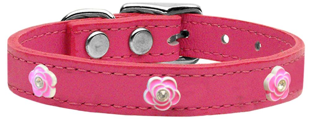 Bright Pink Rose Widget Genuine Leather Dog Collar Pink 10