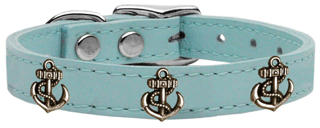 Bronze Anchor Widget Genuine Leather Dog Collar Baby Blue 12