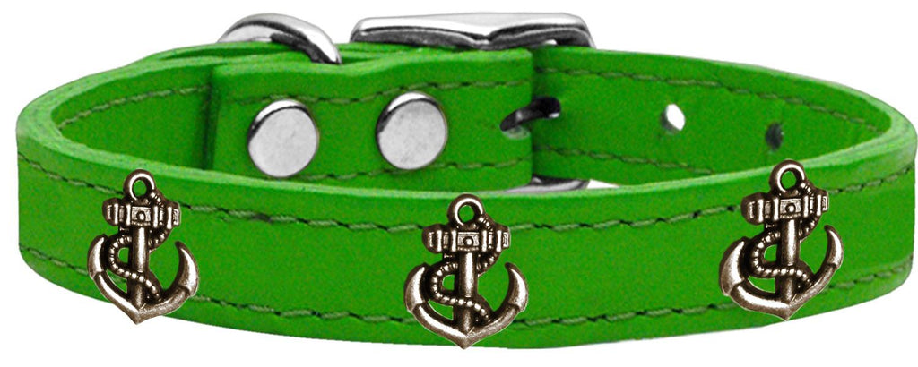 Bronze Anchor Widget Genuine Leather Dog Collar Emerald Green 22