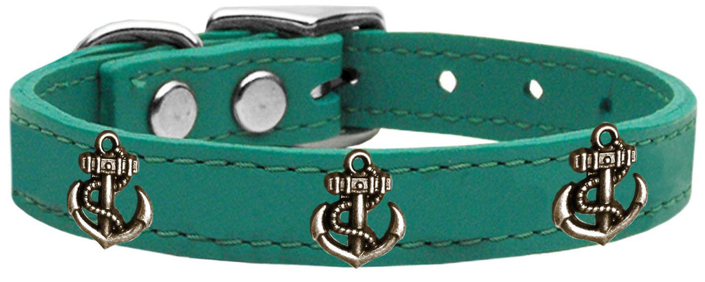 Bronze Anchor Widget Genuine Leather Dog Collar Jade 14