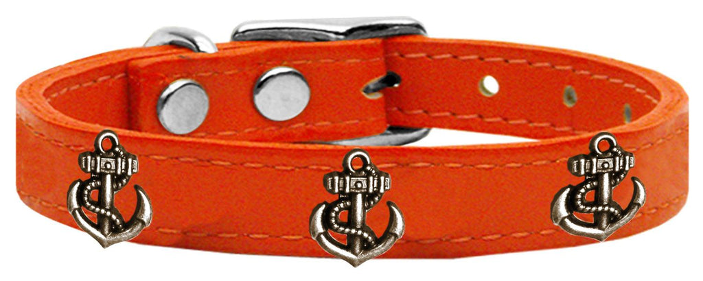 Bronze Anchor Widget Genuine Leather Dog Collar Orange 12