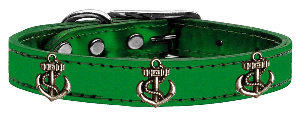 Bronze Anchor Widget Genuine Metallic Leather Dog Collar Emerald Green 26