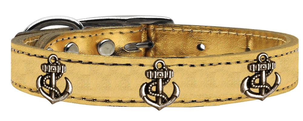 Bronze Anchor Widget Genuine Metallic Leather Dog Collar Gold 10
