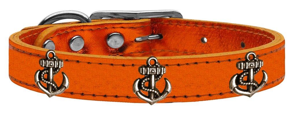 Bronze Anchor Widget Genuine Metallic Leather Dog Collar Orange 16