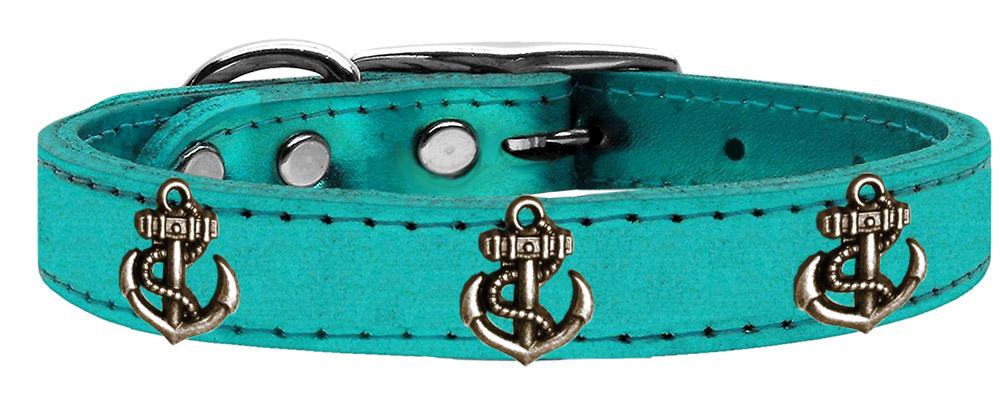 Bronze Anchor Widget Genuine Metallic Leather Dog Collar Turquoise 26