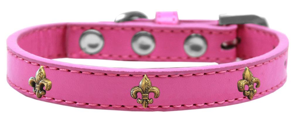 Bronze Fleur De Lis Widget Dog Collar Bright Pink Size 20
