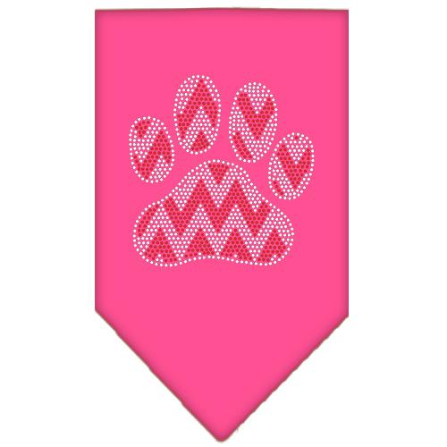 Candy Cane Chevron Paw Rhinestone Bandana Bright Pink Small
