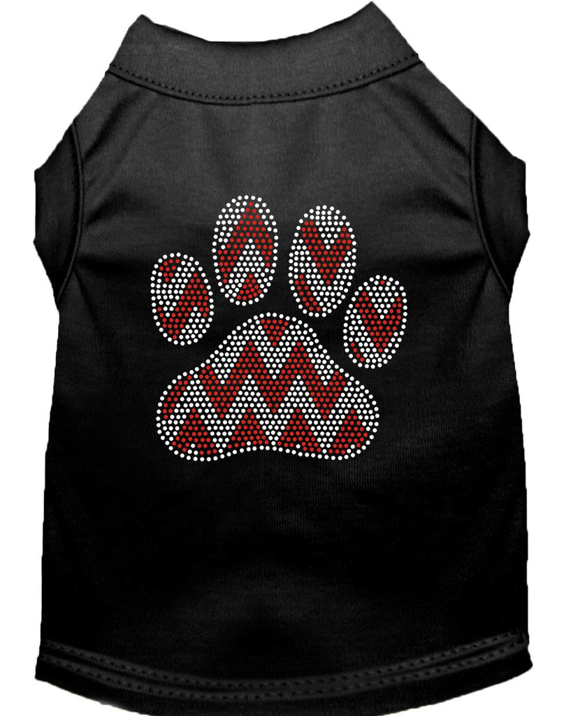 Candy Cane Chevron Paw Rhinestone Dog Shirt Black Lg (14)