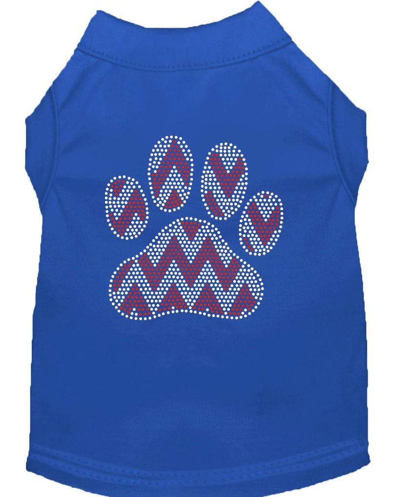 Candy Cane Chevron Paw Rhinestone Dog Shirt Blue Xs (8)