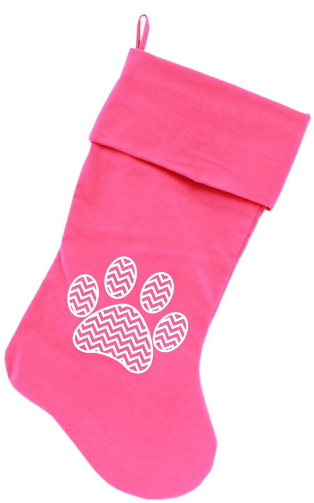 Chevron Paw Screen Print 18 inch Velvet Christmas Stocking Pink