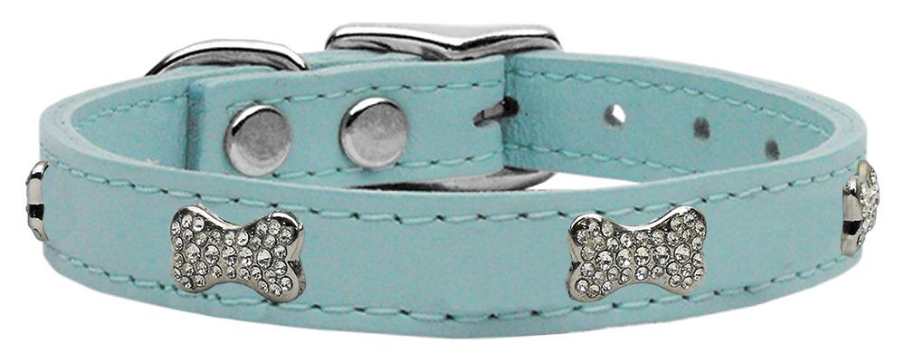 Crystal Bone Genuine Leather Dog Collar Baby Blue 22