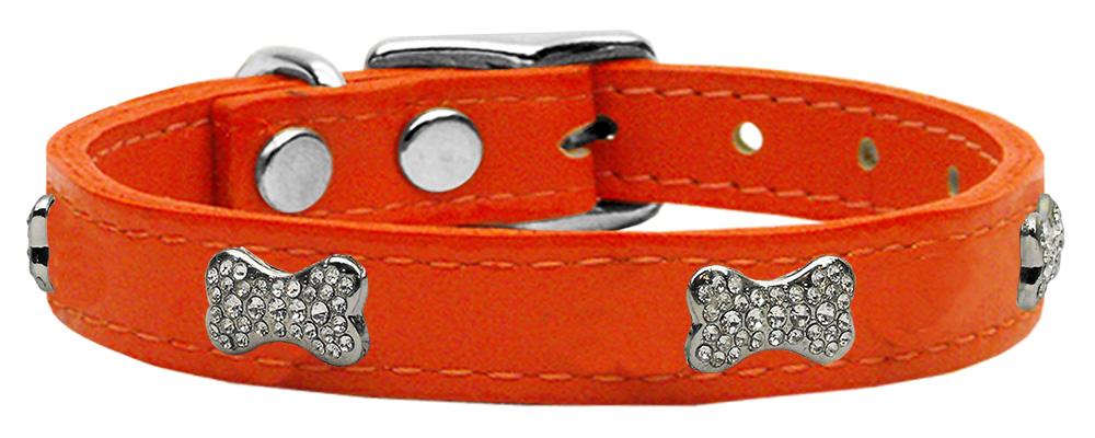 Crystal Bone Genuine Leather Dog Collar Orange 10