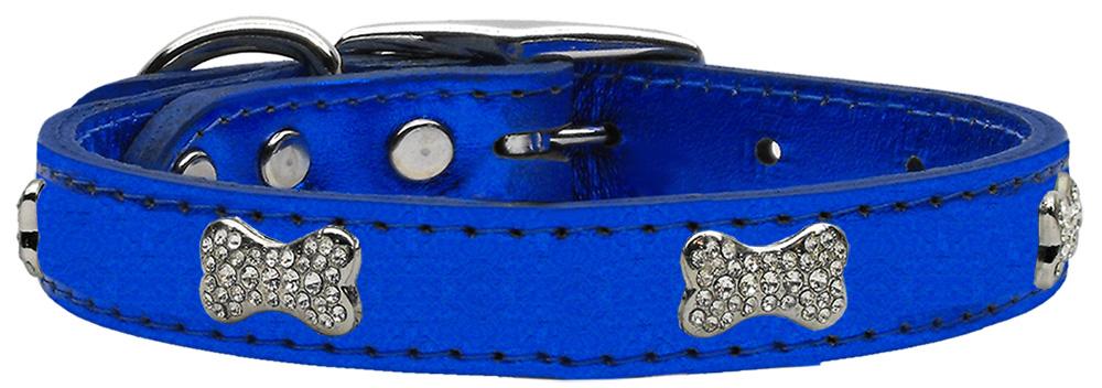 Crystal Bone Genuine Metallic Leather Dog Collar Blue 26