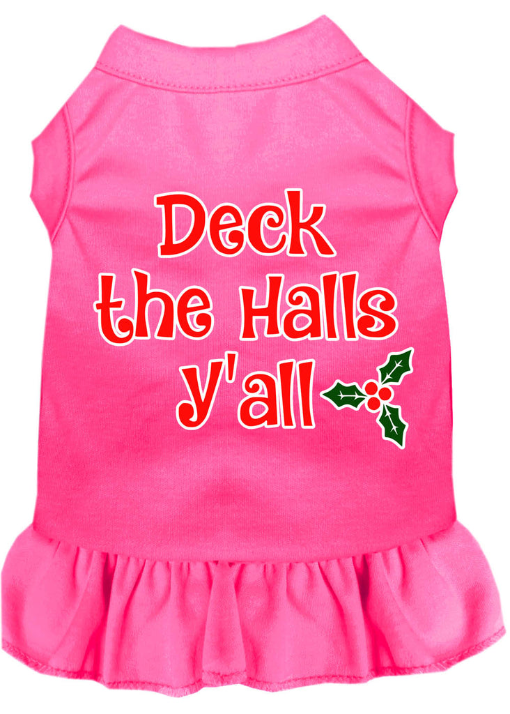 Deck The Halls Y'all Screen Print Dog Dress Bright Pink Xxxl