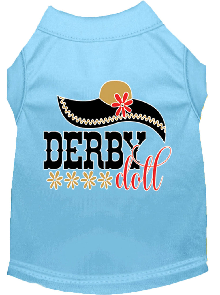 Derby Doll Screen Print Dog Shirt Baby Blue Sm