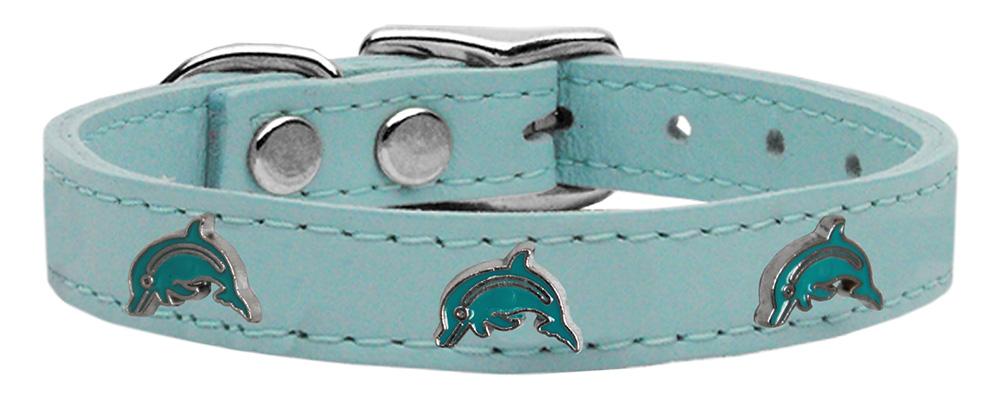 Dolphin Widget Genuine Leather Dog Collar Baby Blue 12