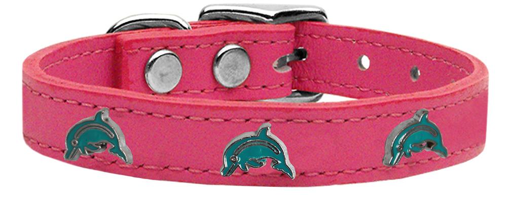 Dolphin Widget Genuine Leather Dog Collar Pink 12
