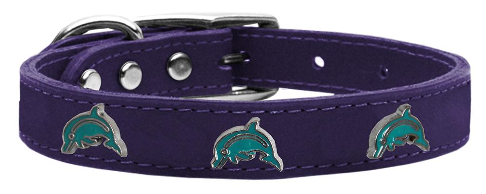 Dolphin Widget Genuine Leather Dog Collar Purple 14