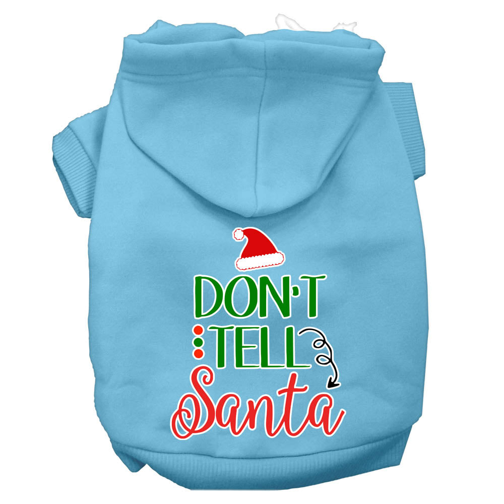 Don't Tell Santa Screen Print Dog Hoodie Baby Blue Xxl
