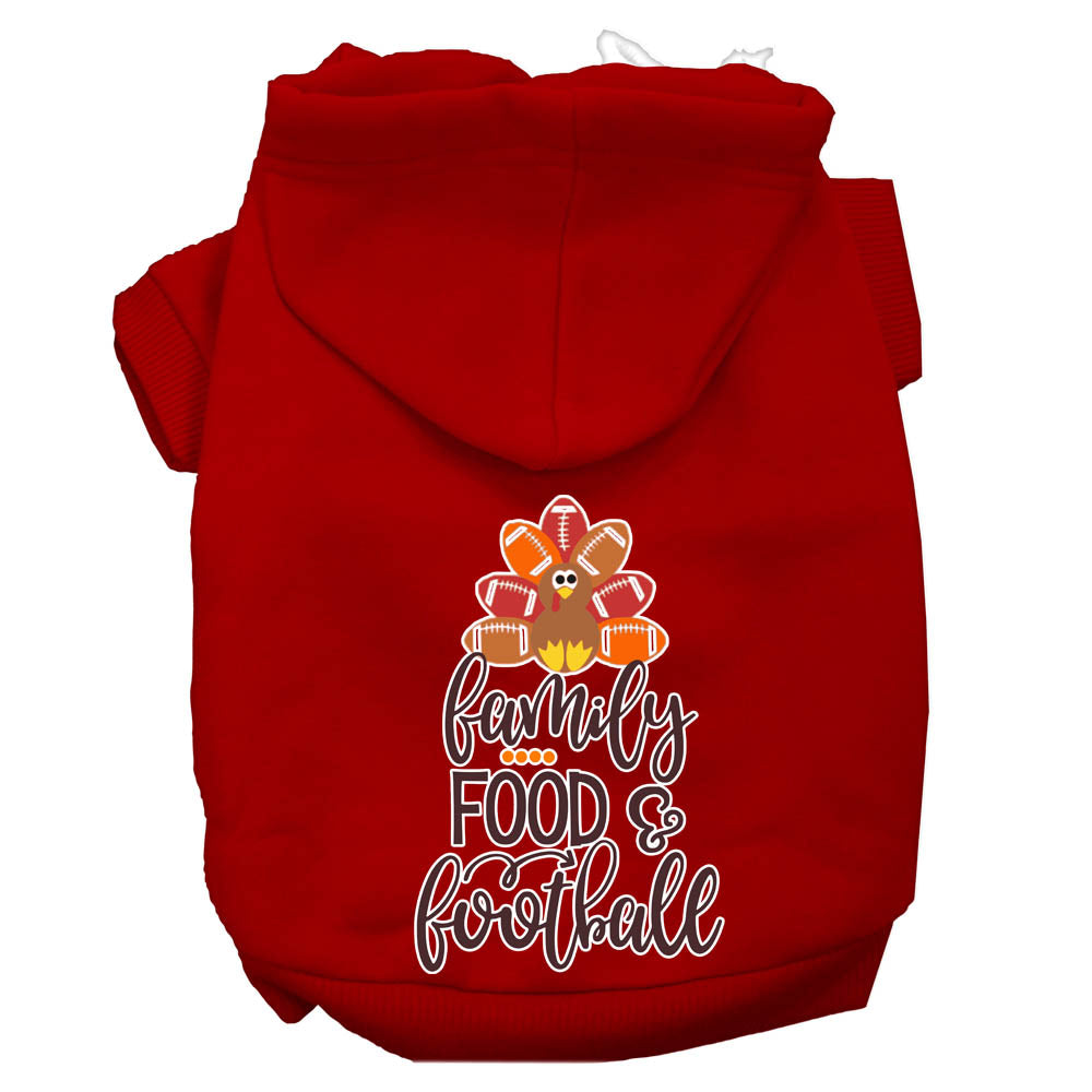 Family, Food, And Football Screen Print Dog Hoodie Red Xs