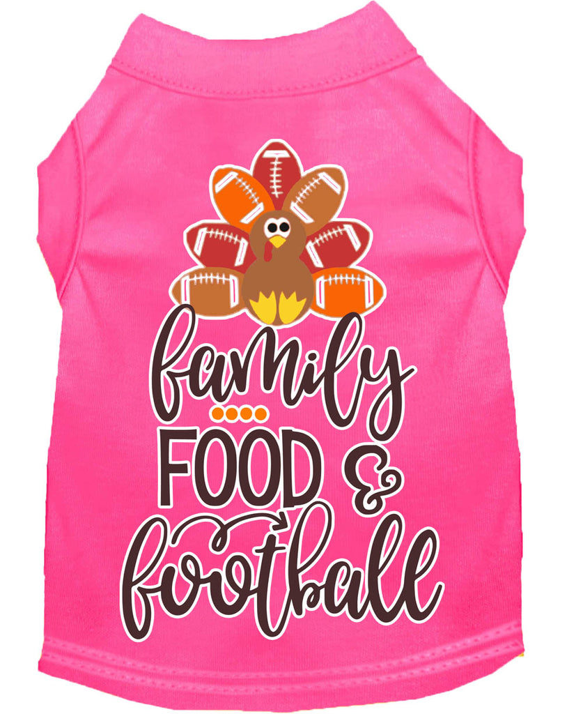 Family, Food, And Football Screen Print Dog Shirt Bright Pink Lg