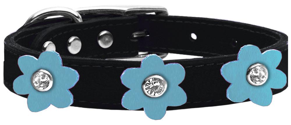 Flower Leather Collar Black With Baby Blue Flowers Size 14