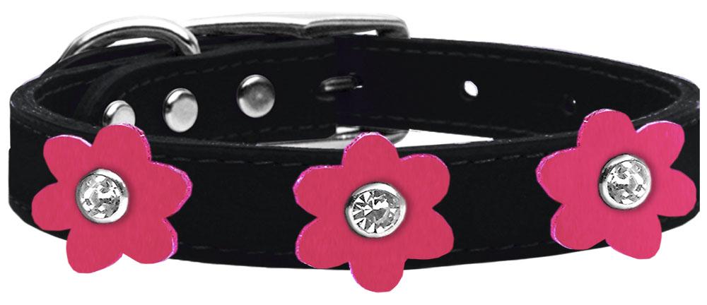 Flower Leather Collar Black With Pink Flowers Size 16
