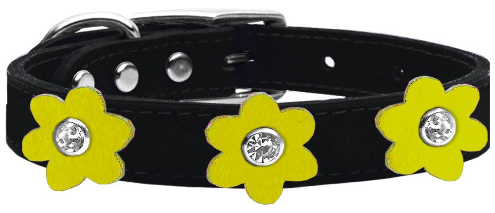 Flower Leather Collar Black With Yellow Flowers Size 20