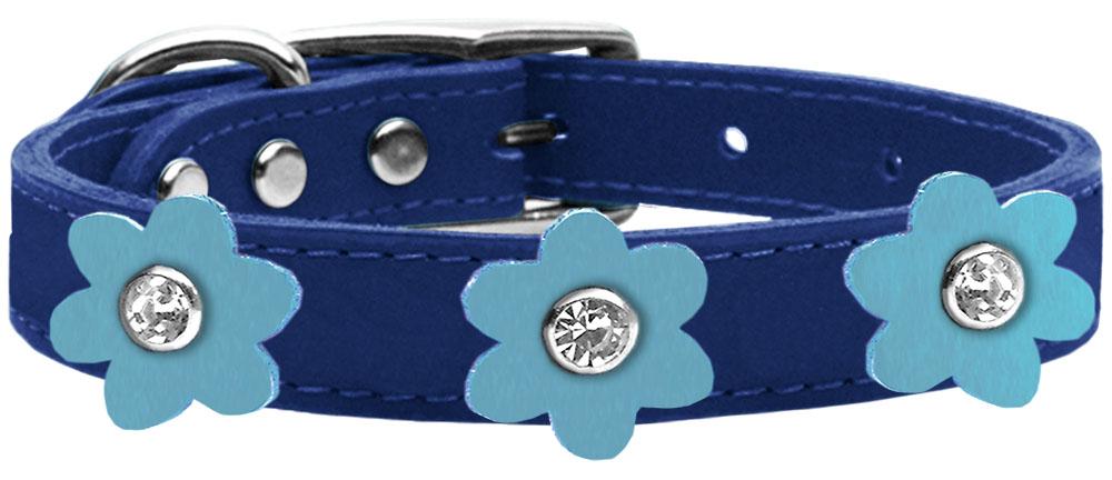 Flower Leather Collar Blue With Baby Blue Flowers Size 18
