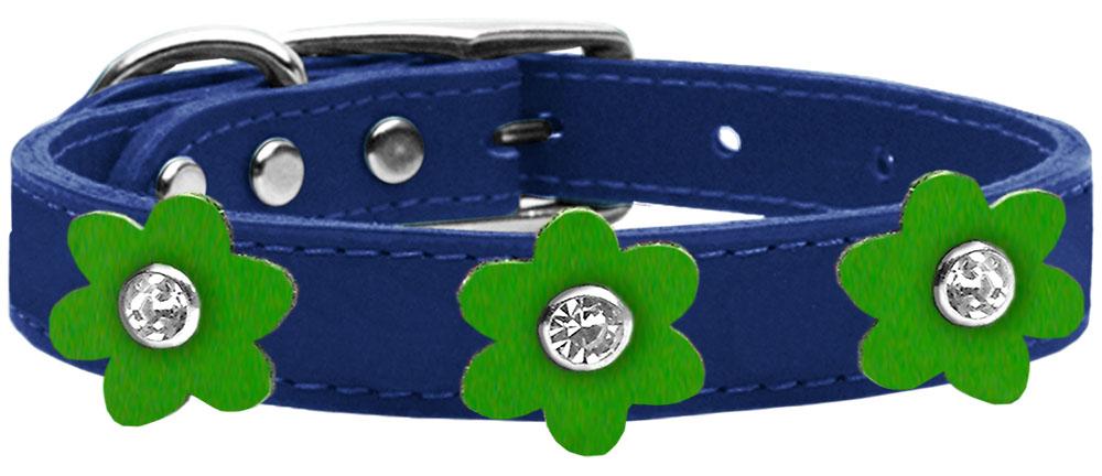 Flower Leather Collar Blue With Emerald Green Flowers Size 12