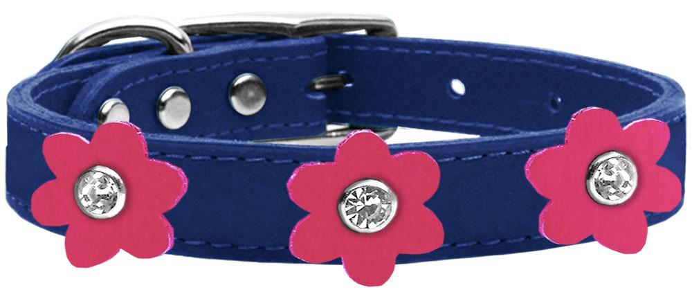 Flower Leather Collar Blue With Pink Flowers Size 16