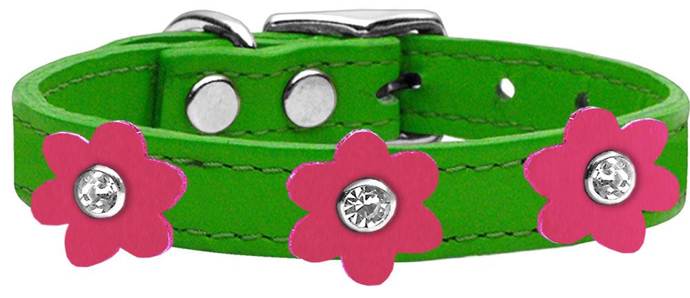 Flower Leather Collar Emerald Green With Pink Flowers Size 24