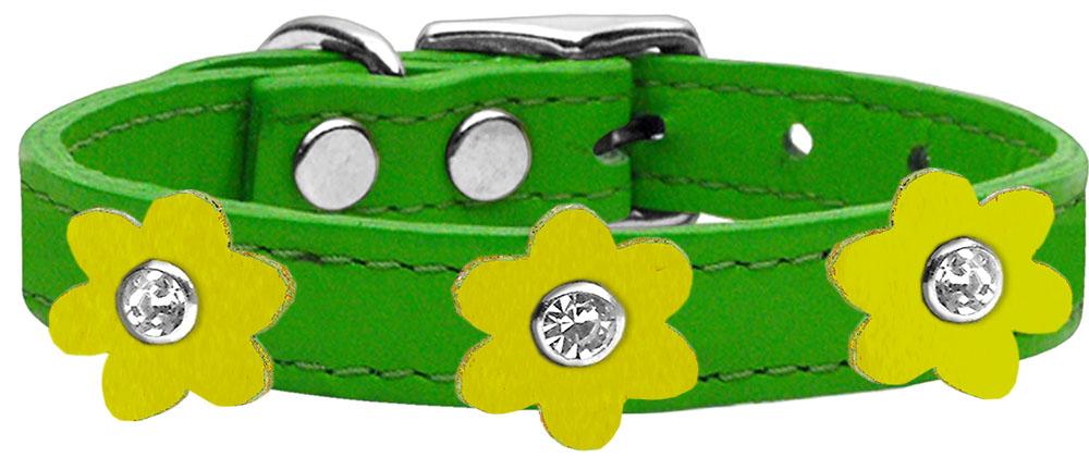 Flower Leather Collar Emerald Green With Yellow Flowers Size 24