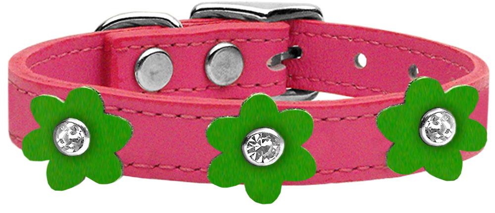 Flower Leather Collar Pink With Emerald Green Flowers Size 18