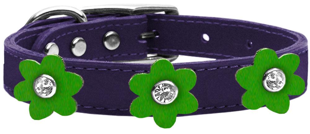 Flower Leather Collar Purple With Emerald Green Flowers Size 26
