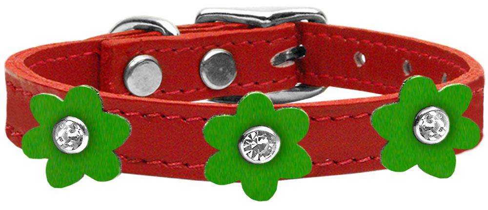 Flower Leather Collar Red With Emerald Green Flowers Size 12