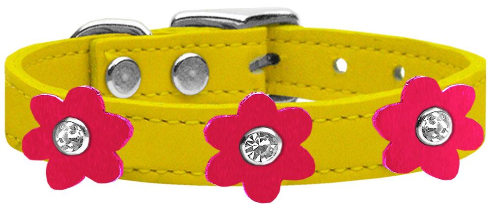 Flower Leather Collar Yellow With Bright Pink Flowers Size 10