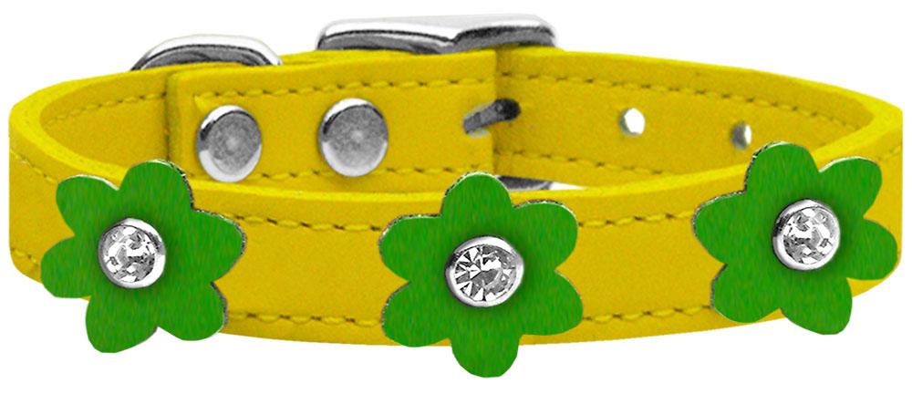 Flower Leather Collar Yellow With Emerald Green Flowers Size 24