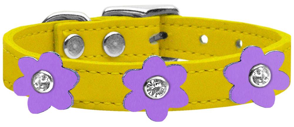 Flower Leather Collar Yellow With Lavender Flowers Size 10