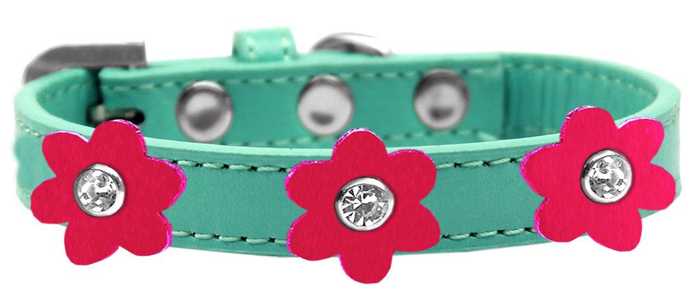 Flower Premium Collar Aqua With Bright Pink Flowers Size 18
