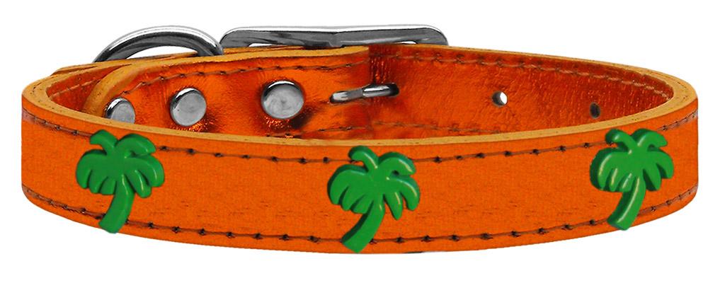 Green Palm Tree Widget Genuine Metallic Leather Dog Collar Orange 24